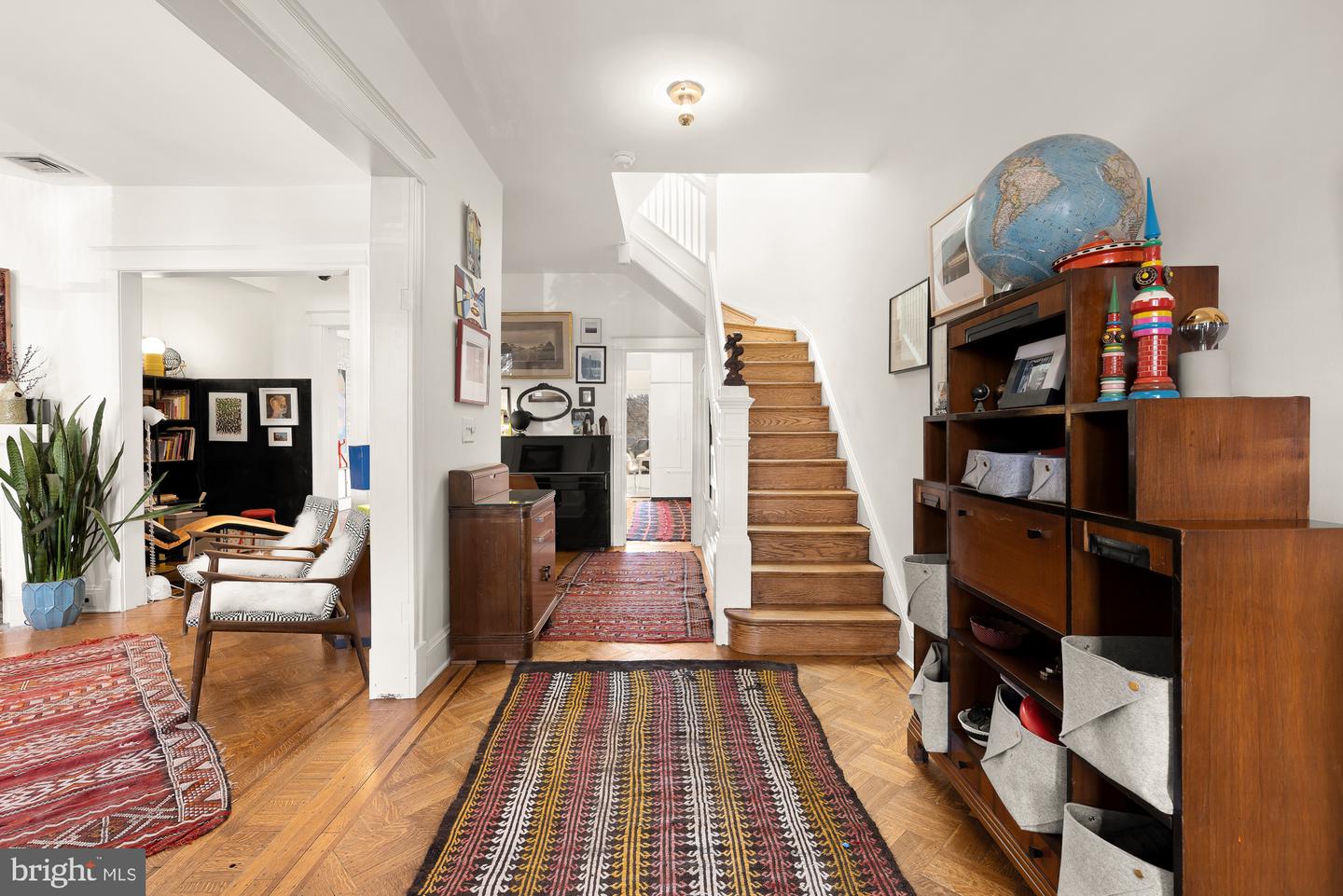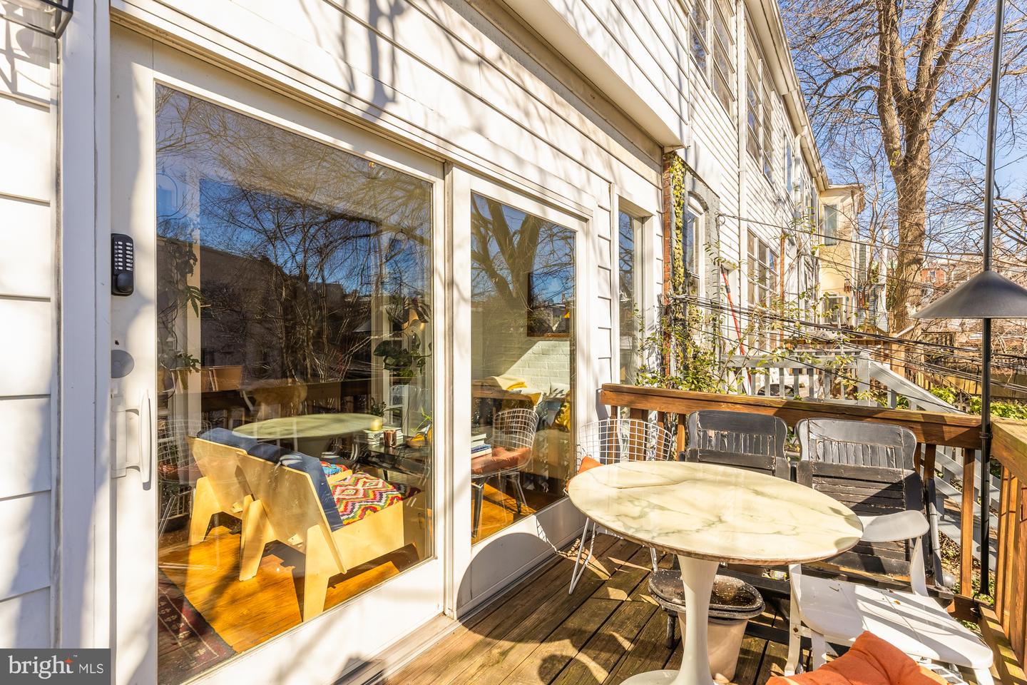 Charm and character enrich this artistic Mount Pleasant row home, offering three full levels of living space, a rear yard with patio and two decks, plus two-car garage parking. Original hardwood parquet floors grace a welcoming main level built for entertaining - or retreating from the world. An interior parlor offers flexibility, perfect for a library or reading room, and leads to the lovely, open dining area with exposed brick. The updated kitchen revels in a modern design and boasts luxe Fisher & Paykel appliances and abundant storage. French doors open to the sun porch, which glows with a south-facing wall of windows overlooking the generous rear yard, and a newly renovated powder room. Upstairs offers four bedrooms and two full baths, complemented by three skylights and an additional sun porch with full laundry. The renovated lower level offers a private entrance as well as interior stairs, a comfortable living space and walk-out access to the rear patio and deck. Enjoy the amenities of one of the most sought-after neighborhoods in the city, with its bilingual elementary school, top notch dining options, and easy access to Rock Creek Park and the National Zoo.